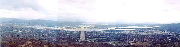 戦争記念館から。正面がキャピタルヒル。右がシティヒル。間に見えるのが、バーリ−グリフィン湖という人工湖。