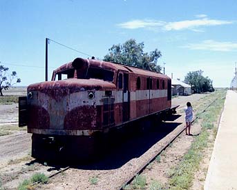 特徴:1883年設立。Old Ghan Railway(廃線)の駅の町。Oodnadatta TrackとBirdsville Trackの起点。人口は100人ぐらい。砂漠の中の孤立した町。