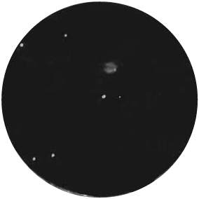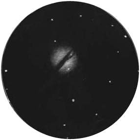 コメント:全体的には円形。ちょっと見ただけでは分解されない球状星団のよう。右側から暗黒帯。30cm反射ではスパッと帯状に見える。それぞれの半円は南側(上部)の方が明るい。特に西側が。暗黒帯部分も真っ黒には見えないが、錯覚か?