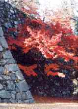 ![]() 普通の石垣ですが、モミジが多くて絵になります。89年当時、本丸で石垣や建物跡の発掘作業をしていました。今はもう終わっているかも。 |