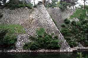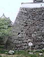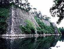![]() 上及び下二枚の写真はほぼ同一個所のものです。日本一の高石垣を称するだけあって、かなりの高さです。 |