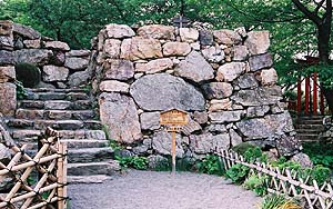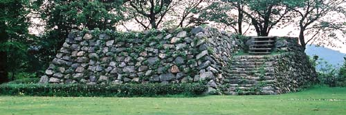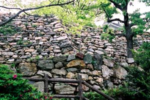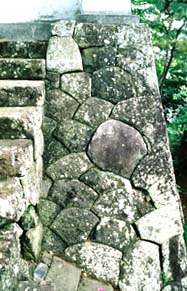 ![]() 天守閣入口付近の石垣。大胆な野面積み。 |