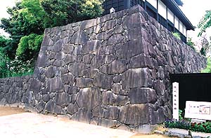 ![]() 二の丸御殿入口の石垣。鱗の様で、珍しい。 |