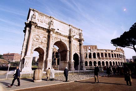 特徴:315年、ミルヴィオ橋の勝利を讃えて、建てられた。ローマで最大の凱旋門。