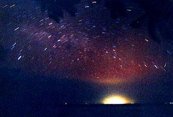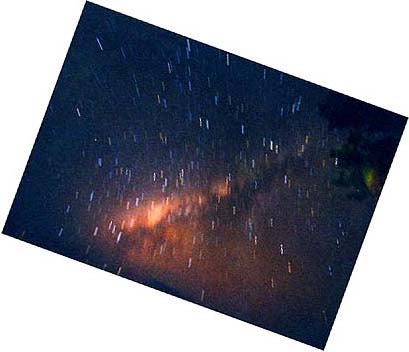中央左の明かりは首都マーレ。その上にカシオペア。左にははくちょうとこと。右隅に流星が写っています。