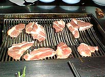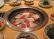 夕食は南大門の南牛村(ナムチョン)。骨付きカルビ、ロース、霜降り(写真)、チゲ(サービス)、ビール2本。特に絶品は霜降り。出てきた時は「おいおい、ただの油じゃねーか」と思ったが、焼いてみると意外に香ばしくてうまい。会計はW6,500。 食後に隣に居たオヤジ3人組にビールを御馳走になる。オヤジの一人は韓国サッカーリーグのチームのコーチで、やたらと「カマモトはすごい選手だった」と言っていた。真意のほどは定かではないが、読売ジャイアンツの趙成民と知り合いだとも言っていた。その他、Rex Hotelの適正価格や森総理の退陣等について話す。