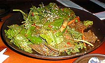 タクシーで明洞に戻り、民族酒場「草家(チョガ)」へ。オンドルが暖かい。レモン焼酎とドングリコンニャク(写真)を注文。ドングリコンニャクは柔らかいコンニャクとシソやレタスをキムチであえたもの。生野菜がうまい。しかし、別にドングリの味はしなかった。レモン焼酎はレモンの果実酒。ちょっと甘すぎる。更に雪中梅という飲み物を追加。これは普通の梅酒だった。やっぱりちょっと甘い。 しこたま酔って、歩いて帰る。やっぱりLG25に寄り、ミネラルウォーター、苺牛乳、ガム、ドリンク剤を買い込む。