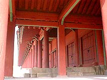 3/17(金) 朝、ソウル市内の地下鉄に乗り、チョンミョへ。なにやら妙に細長い木造建築の廟。結構、造りはシンプル。