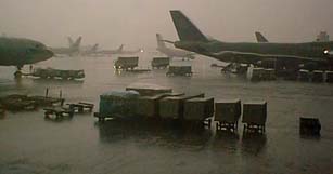 肘が痛い。最近、会社で事務所の引越しとか、実験室の引越しとかばかりやっていたせいで、健忘症かも。ちがう。敢闘賞かも。ちゃう、ちゃう。腱鞘炎かも。 「雨に煙るキンポ空港」