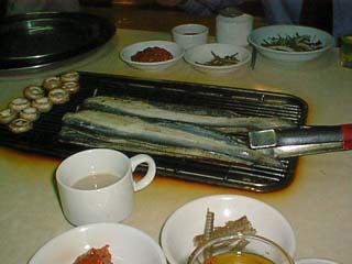寝不足だったので、風呂も入らず、早めに寝る。 「韓国での鰻の食べ方(手前に頭のすり身と骨せんべい)