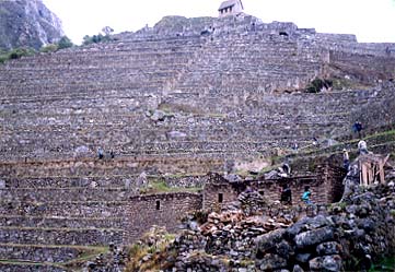 位置:Machu Pichu。農地管理人住居跡の後方に広がる。