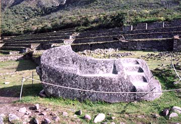 右側に三段の階段?中央部は二段の台?上の面は広々としている。左端には穴が貫通している。