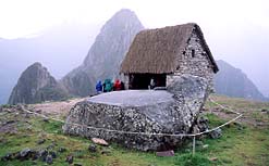 上はツルツル。背後は見張り小屋とワイナピチュ。