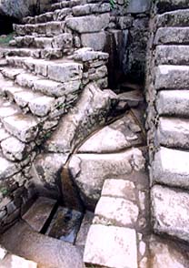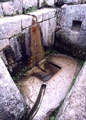 位置:Machu Pichu。入り口に近い市街地の中に縦に並んでいる。