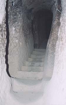 特徴:カッパドキアには36箇所の地下都市が確認されており、3箇所が公開されている(デリンクユ、カイマクル、マズキョイ)。その中の一つ。カイマクルでは地下4階まで見ることができる。
