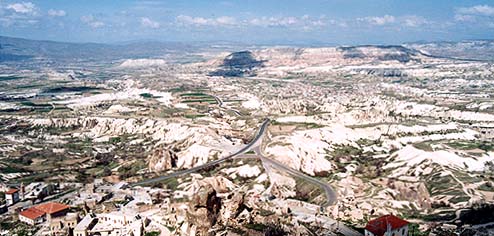 ウチヒサール頂上からの眺め。浸食の進んだ火山灰大地の景観。